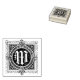 Lettre M première lettre de style gothique vintage calligraphie dessinée à la main. La lettre M est centrée dans un cadre circulaire et un cadre extérieur carré. Bordée de vagues, de points et de lignes décoratives.