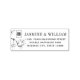 Pêche orientale / fleurs de prune, fleurs de printemps avec un simple rectangle double symbole de bonheur nom de retour mariage et adresse tampon d'encre en caoutchouc / timbre auto-encrage. Un design mariage à thème chine fleurie élégant et romantique qui est fantaisiste, moderne et classe. Les fleurs de 桃 (花 en chinois) / fleurs de prunes (梅 en japonais et coréen / 梅 méihuā en chinois) sont similaires aux fleurs de cerisiers ou de sakura. Ils fleurissent au début du printemps et symbolisent de nouveaux débuts, l'amour et l'amour dans la culture chinoise, japonaise et coréenne. Le double bonheur (shuang xi) est un symbole traditionnel qui se révèle être un bon symbole utilisé par tous les mariages chinois. Le double symbole de bonheur peut être supprimé. Tout le texte est modifiable. Illustration de fat*fa*tin. Facile à personnaliser avec votre propre message texte, nom, photo ou image. D'autres styles de police, filtres photo et fonctions d'édition sont disponibles sur la page "modifier la conception". ・ ・ ・ ・ ・ ・ ・ ・ ・ www.zazzle.com/fatfatin_blue_knot