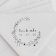 Logo de mariage sur mesure / Enregistrer le cachet en caoutchouc Date avec élégante couronne florale dessinée à la main avec les noms de mariée et de mariée personnalisés et la date du mariage.