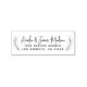 Ce design de timbre en caoutchouc unique harmonise les aspects traditionnels et contemporains, créant une ambiance sophistiquée et intime qui peut être adaptée à vos préférences. Il présente des feuillages délicatement esquissés encerclant une élégante police manuscrite. Mettez le modèle à jour sans effort avec les informations souhaitées, telles que les noms, le numéro de maison, la rue, la ville, l'état et le code postal. Bien qu'à l'origine destiné à la correspondance mariage, aux notes de remerciement et aux occasions spéciales impliquant deux personnes, ce timbre polyvalent complète également parfaitement les individus et les familles. Pour personnaliser, cliquez simplement sur "Personnaliser ce modèle" et modifiez le texte dans les champs désignés.