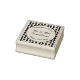 Ce superbe timbre d'art du bois présente un motif de fruits tropicaux à l'ananas jaune aux toits verts et de jolis feuilles de palmiers vert pâle. Idéal pour un Mariage à thème estival ou tropical. Il y a un cercle jaune avec des motifs blancs marbrés qui contient du texte personnalisable pour vous permettre de personnaliser cette conception.