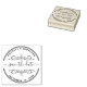 Parfait pour que la mariée soit pour envoyer des invitations ce timbre en caoutchouc mariage à thème Enregistrer la date ajoute une touche d'élégance à vos envois. Cette conception comporte les mots "Enregistrer la date" dans le centre. De part et d'autre se trouve une floraison décorative dessinée à la main avec des coeurs et des feuilles. L'arête extérieure a une double bordure circulaire et à l'intérieur de celle-ci sont les noms et la date mariage que vous pouvez personnaliser. C'était un plaisir de créer celui-ci pour votre journée spéciale !