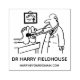 Le docteur utilise son stéthoscope sur les pieds d'un patient. Caricature amusante à personnaliser avec votre nom et vos coordonnées. Idéal pour estampiller vos détails sur les lettres, enveloppes, cartes de rendez-vous, ordonnances, dépliants, etc.