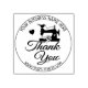 Ce timbre "Merci" est muni d'une machine à coudre avec des fleurs et un oiseau, nom d'entreprise et message de remerciement. Parfait pour les petites entreprises.