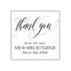 Timbre d'art en bois d'érable avec vos noms écrits dans une police élégante sous un script de calligraphie magnifiquement tourbillonnant lire merci.