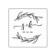 Les monogrammes des couples sont une belle calligraphie script avec la date du mariage enveloppée dans un tampon en caoutchouc de couronne de feuilles de laurier.