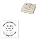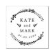 Tampon de mariage personnalisé avec une couronne botanique de style dessiné à la main avec les noms des mariés et la date du mariage.