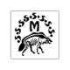 Illustration d'une hyène rayée marchant sous le soleil. L'image a été faite dans un style de tatouage tribal à l'encre noire. Entre le soleil noir et la hyène noire est la lettre M, m est court pour monogramme et peut être personnalisée à vos désirs.