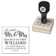 Le design d'adresse de retour rustique chic mariage comporte des caractères gras et amusants manuscrits M et Mme calligraphie typographie de script et accents de conception de défilement. Personnalisez l'élégant monogramme personnalisé avec votre nom de famille marié et le texte de l'adresse de retour pour votre jour de mariage décontracté.