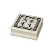 Tampon de Noël avec une empreinte NOEL amusante et un bauble rayé de Noël dans un carré rayé.