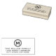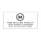 Le nom de famille avec timbre d'adresse de retour monogramme présente un design simple avec médaillon monogramme stylisé avec typographie moderne. Personnalisez ce cachet modèle avec une initiale monogramme personnalisée, le nom de famille et l'adresse, ou utilisez le bouton "concepteur de messages" pour obtenir de l'aide. Une façon parfaite de customiser les envois de votre famille.