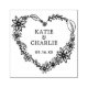 Jolie couronne de coeur fleurie avec nom de couple dans le serif classique et la date dans la typographie moderne san serif. Timbre idéal pour mariage ou toute occasion spéciale.