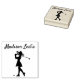Ce timbre à encre personnalisée présente une élégante golfeuse, prête à balancer son club, avec votre nom magnifiquement placé au-dessus d'elle.