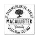 Tampon pour une famille. Ajoutez le nom de famille ainsi que l'adresse et le numéro de contact, etc. Nom de famille et adresse avec un motif d'arbre généalogique stylisé. Grand nom de famille plus deux lignes d'adresse entourant l'image. Un timbre en caoutchouc de famille pour toutes sortes d'articles de papeterie, enveloppes, paquets etc. Timez votre adresse de retour facilement et élégamment.