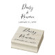 Accessoire de timbre pour courrier ou papeterie élégamment simple, avec des noms de style manuscrits classiques associés à une date en police sérif simple.