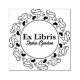 Un design de tampon Ex Libris rond avec un bord circulaire composé de petits oiseaux tenant chacun un cœur d'amour au bout d'une petite baguette dans leur bec. Changez le nom pour personnaliser.