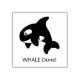 Caricature adorable chubby Orca baleine avec un petit coeur blanc près de sa queue. Voici le message : BALEINE terminée !