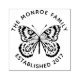 Timbre en caoutchouc de papillon noir portant le nom de votre famille et la date établie.
