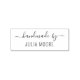 A personalized "handmade by" rubber stamp with a wood handle for your business, art projects, or creations. Customize it with your name in a beautiful script and simple, minimal font.