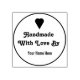 Votre entreprise vend-elle des produits artisanaux? Un timbre d'entreprise personnalisé permet à vos clients de voir facilement qu'ils obtiennent un produit fait à la main. Un coeur est au sommet. Au centre, le texte dit "Fait main avec amour par". En bas, il y a un espace réservé pour votre propre nom ou le nom de l'entreprise.