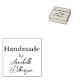 Ce timbre sur mesure présente un design simple mais professionnel. Le dessus du timbre comporte le mot "Fait à la main" imprimé dans une police sophistiquée, suivi d'un exemple de nom imprimé dans le script de sorte qu'il apparaît comme une signature. Le nom sur le timbre peut être personnalisé pour inclure votre propre nom, nom d'entreprise ou de société, ou tout autre message ou devis personnalisé.