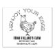 Un timbre original, illustré et personnalisé pour votre entreprise d'oeufs ! Les clients adoreront le jeu de mots sur la poule, "Henjoy vos oeufs" ! Différenciez-vous avec ces timbres d'adresse de retour de poulet drôles mais élégants et tamponnez vos oeufs avec une illustration de poule mignonne qui fera sourire vos clients ! La conception décorative de la poule présente un dessin original d'une poule courageuse avec la tête haute et fière. Le texte incurvé stylé crée un effet de logo tandis que vous pouvez personnaliser l'impression en gras en bas en ajoutant le nom et l'adresse de votre entreprise agricole (ou site web) !