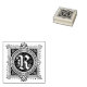 Lettre R première lettre de style gothique vintage calligraphie dessinée à la main. La lettre orange R est centrée dans un cadre circulaire et un cadre extérieur carré. Bordée de vagues, de points et de lignes décoratives.