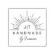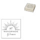 Cet élégant timbre en caoutchouc "fait main" dispose de rayons de soleil élégants avec vos initiales en lettres modernes, ci-dessous est un texte "fait main" suivi de votre nom dans un script manuscrit. Créez votre propre estampille pour petite entreprise/passe-temps "artisanal avec amour" en cliquant sur le bouton "Personnaliser".
