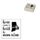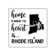 La maison de Rhode Island est où le coeur est - en caractères mixtes et en majuscules noirs avec la silhouette de l'état et un coeur décoratif.
