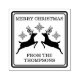 La silhouette festive de Destei de deux rennes et quelques flocons de neige. Il y a aussi deux zones de texte personnalisables et la conception est encadrée par une bordure arrondie.
