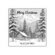 Vous apprécierez le style rustique de la campagne avec ce timbre en caoutchouc festif. Le design est celui d'une scène de neige hivernale avec des montagnes et des pins, avec un cabine en bois confortable niché à flanc de colline. Avec le message de bienvenue "Joyeux Noël" en haut, la carte peut être personnalisée avec votre(s) nom(s) ou autre texte.