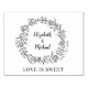 Ce timbre en caoutchouc "Mariage floral" comporte une couronne de fleurs avec des noms de couple, date et message.