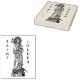 La figure sur ce tampon a été extraite d'un litho noir et blanc de 1889. La publication du litho coïncidait avec la promulgation d'une "Prière à saint Joseph" du pape Léon XIII. Il a été inclus dans son encyclique connu de ses premiers mots en latin comme "Quamquam Pluries", c'est-à-dire, "Bien que de nombreuses fois..." sur la dévotion à ce saint. + Le litho d'où cette figure a été extraite était compositivement beaucoup plus complexe. (Voir les cartes et les affiches dans cette COLLECTION.) Il suffit de dire, ici saint Joseph est représenté dans son rôle de protecteur de l'Église qui étouffe Satan. Comme d’habitude, Saint-Joseph tient un spray de lys symbolisant la pureté dans sa main droite et une règle de menuisier en L qui témoigne de sa profession dans sa gauche. En plus de ces attributs traditionnels, cependant, plusieurs autres apparaissent—notamment un petit dragon, une couronne, un rouleau et un globe portant les noms des continents peuplés—l'Asie, l'Australie, l'Amérique (du Nord et du Sud), l'Afrique et l'Europe. Le dragon, bien sûr, défend Satan. On peut lire : "Non serviam", c’est-à-dire "Je ne servirai pas", une expression qui résume le rejet de Dieu par Satan. (Dans certains articles de presse, le mot ‘libéralisme’ apparaît trop en dessous des mots de Satan.) La figure imposante de saint Joseph, beaucoup plus grande et plus grande que le dragon, écrase la puissance de Satan sur le monde en écrasant le dragon sous ses pieds et en renversant la couronne de la tête du dragon, mettant ainsi fin à la domination de Satan sur l’humanité. + Fête Principale de Saint-Joseph : 19 mars ; Fête de Saint-Joseph le Travailleur : 1 mai + Crédit d'image (DT 01) : Figure extraite d'une lithographie antique de Sancte Joseph, Patronus Ecclesiae [Saint-Joseph, Patron de l'Eglise], publiée à l'origine par Desclée, Lefebvre et Cie, Tournai, Belgique, 18889999 collection privée d'éphémères religieux.