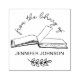 Ce joli timbre-livre de bibliothèque dispose d'une forme ronde élégante avec le texte "de la bibliothèque de" en écriture manuscrite et votre nom personnalisé en typographie moderne simple avec une branche feuillue dessinée à la main ci-dessous. Au centre se trouve une jolie illustration d'un livre ouvert. Customisez-le via le bouton "Personnaliser".