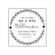 Créez votre propre Script personnalisé Futur Mr & Mrs Retourner Ajoutez un tampon d'adresse avec ce modèle facile à utiliser créé pour vous par Timbres en caoutchouc. Doté d'un script rustique personnalisable dans une couronne dessinée à la main, ce design a tout ce dont vous avez besoin pour ajouter cette touche spéciale à votre jour de mariage.