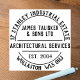Services Architecturaux Timbre En Caoutchouc. Nom de l'entreprise, type d'entreprise, plus deux lignes d'adresse dans un effet circulaire. Un tampon d'affaires pour toutes sortes d'articles de papeterie, enveloppes, paquets, etc. Timez votre adresse de retour facilement et élégamment.