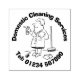 L'illustration d'un dessin humoristique sur le nettoyage domestique amusant montre une femme avec du matériel de nettoyage. Personnalisez-le avec votre choix de nom d'entreprise et de numéro de contact. Timbre en caoutchouc idéal pour une entreprise de nettoyage domestique ou de nettoyage domestique.