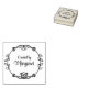 Ce timbre en caoutchouc personnalisé "Created by" comporte un cadre fleuri avec un nom personnalisé.