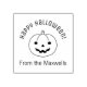 Smiling Halloween pumpkin. Customize with your own message and family name.