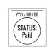 Ce cachet en caoutchouc comprend le message "STATUS : Paid" et une ligne où une date de paiement peut être écrite. On pourrait peut-être l'utiliser pour indiquer qu'une facture ou une facture a été entièrement payée.