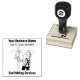 Écrans à échafaudage ou services d'échafaudage Timbre en caoutchouc d'affaires avec une illustration de dessin animé ainsi que votre nom d'entreprise et votre numéro de téléphone. Timbre de la société d'échafaudage.