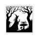 Spiders, Toadstools, and Witches is a design for Halloween. A lone witch in the woods with her best friends: a familiar creepy spider hanging in front of a full moon and another spider with big eyes on a toadstool. A spooky silhouette for any ghoul or boo!