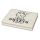 Ce timbre en caoutchouc "Vegan Sweets" comporte un cookie et un nom commercial personnalisé.
