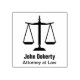 Timbre avec écailles de symbole de justice et texte personnalisable.
