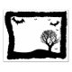 Timbre d'art en caoutchouc de chauves-souris et silhouette de paysage arboré. Et n'oubliez pas que vous pouvez customiser.