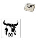 Un crâne noir taureau longhorn fait dans le style tatouage tribal à l'encre noire. De l'une des cornes est une plume noire dans un style pochoir. Entre le crâne et la plume est un blanc qui est destiné au monogramme changeant. Le est court pour le monogramme et peut être changé comme le coeur le désire.