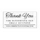 Rubber stamp featuring the text "Thank you" in an elegant font, and customizable text below "for supporting our small business" with customizable website URL.