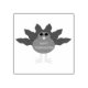 Ce superbe timbre d'art en bois présente une caricature d'une dinde aux grands yeux noirs, un petit bec jaune et des plumes de queue qui collent. Les pieds sont orientés dans des directions opposées, ce qui rend la dinde un air de nid. La dinde a du texte rose sur son ventre qui dit "Bon thanksgiving" et on dirait que les plumes ont été arrachées pour révéler le message.
