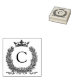 Timbre en caoutchouc élégant avec Monogramme vintage Lettre initiale C, couronne et couronne. Différentes tailles et modifications, personnalisation sont disponibles. Impression graphique ancienne, clipart de dessin rétro, vieille image pour l'art mail, scrapbooking, étiquette, autocollant etc