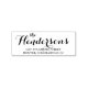 Timbres d'adresse de retour en caoutchouc personnalisés avec nom de famille dans le script de calligraphie et adresse dans une simple police serif. Parfait comme un cadeau pour les jeunes mariés ou comme un cadeau pour le ménage, ou utilisé pour envoyer des invitations et des annonces. Pour modifier la police, la taille de police ou le placement du texte, utilisez le bouton Personnaliser / Personnaliser.